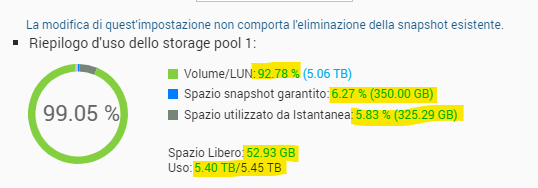 Ciao, ti rispondo al volo, dovrei controllare meglio il motivo ma l'errore che ricevi è relativo al Pool non al volume. Guarda bene i valori che hai postato sopra in apertura del thread e ti renderai conto che la notifica ha un senso (il tuo Pool è pieno).
