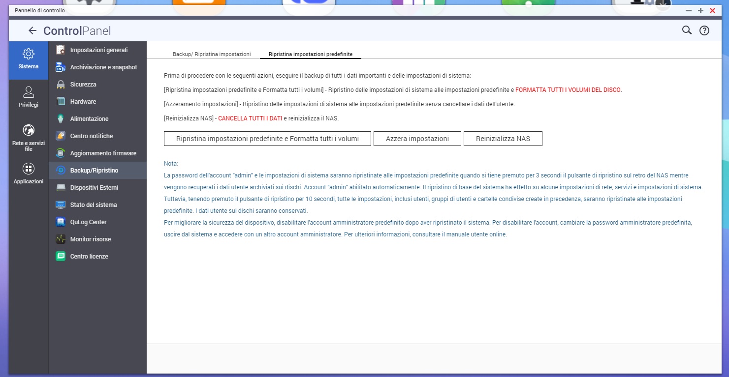 Resettare e riformattare QNAP