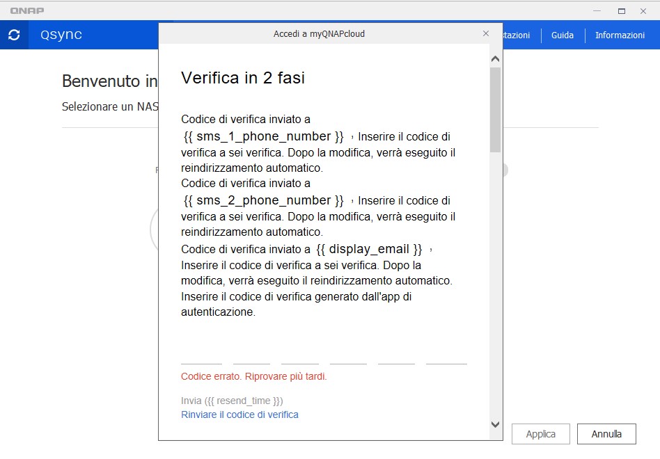 ho un pc Windows 10 con Qsync (gia' provato a reinstallarlo) che se faccio la rierca con 'QID' mi compare una finestra con codice html evidentemente sballato che mi dice che il codice non e' corretto come in attachment.
