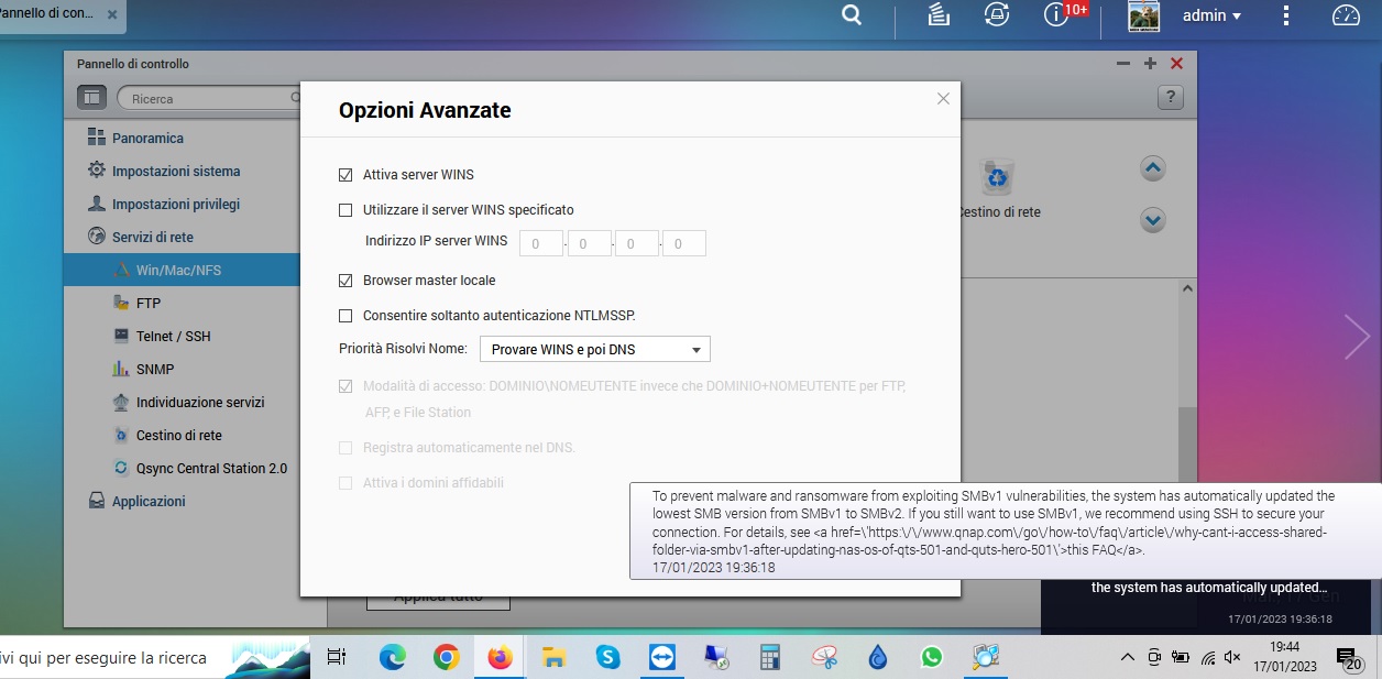 PiaNi ha scritto: 20/09/2022, 22:38 Probabilmente, con l'aggiornamento, la verione minima di SMB è stata portata a 2.