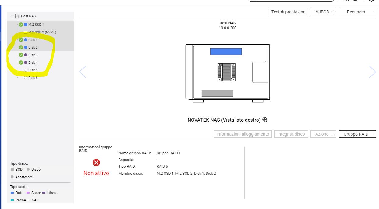 nel gruppo raid5 mi vede solo i 2 m2 e hd 1 e hd2