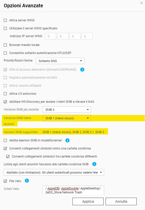 Per cui vi chiedo, a vostro avviso l'uso del SMB 1 è davvero così pericoloso al tal punto da temere per il NAS stesso?