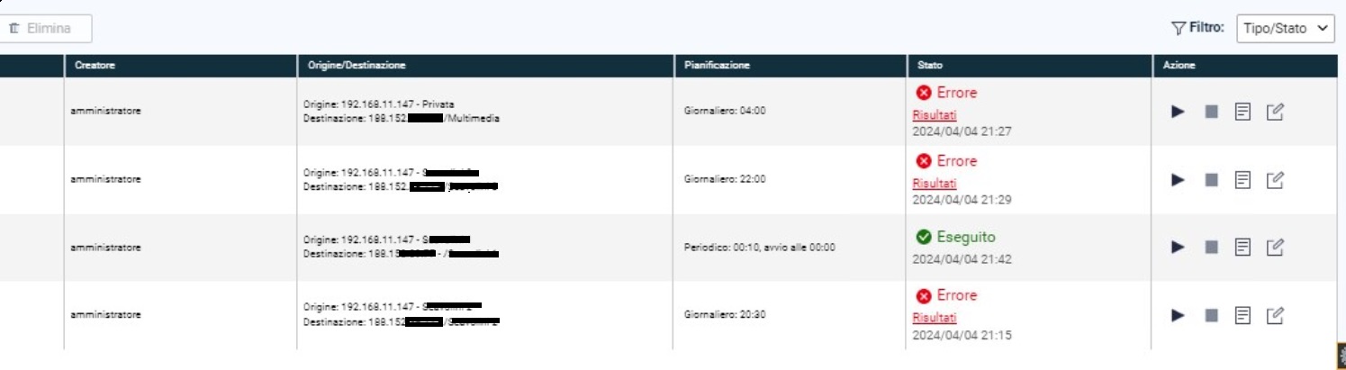 Buonasera a tutti, sto riscontrando un problema con i processi HBS da un nas locale ad uno remoto.