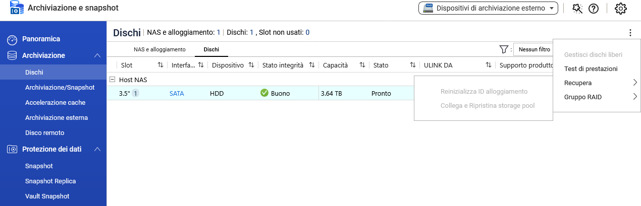 I dischi sono tutti verdi e marcati come in buone condizioni ma lo stato è inattivo e in file station non risultano più ne screenshot ne partizioni.