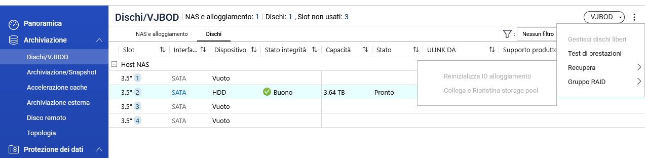 AL momento ho creato un disco non raid ma avevo in casa un disco piccolo 500GB, mentre quelli del NAS sono in origine da 4T.
