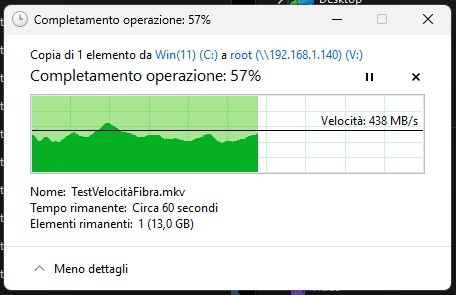 La prova è stata fatta da un file da 32GB facendo il copia/incolla