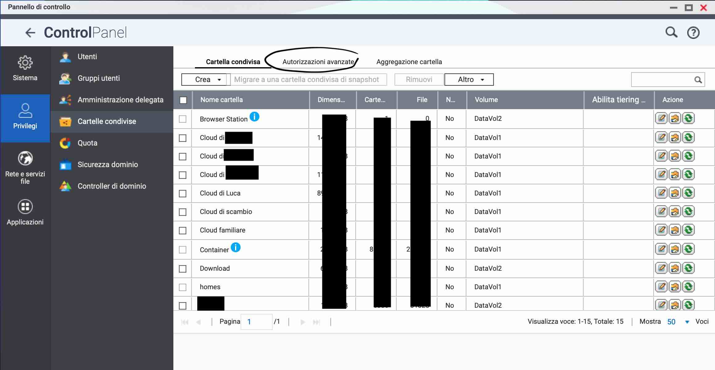 Attivata questa funzione potrai personalizzare le autorizzazioni di "sottocartella1", "sottocartella2", "sottocartella3" e così via.