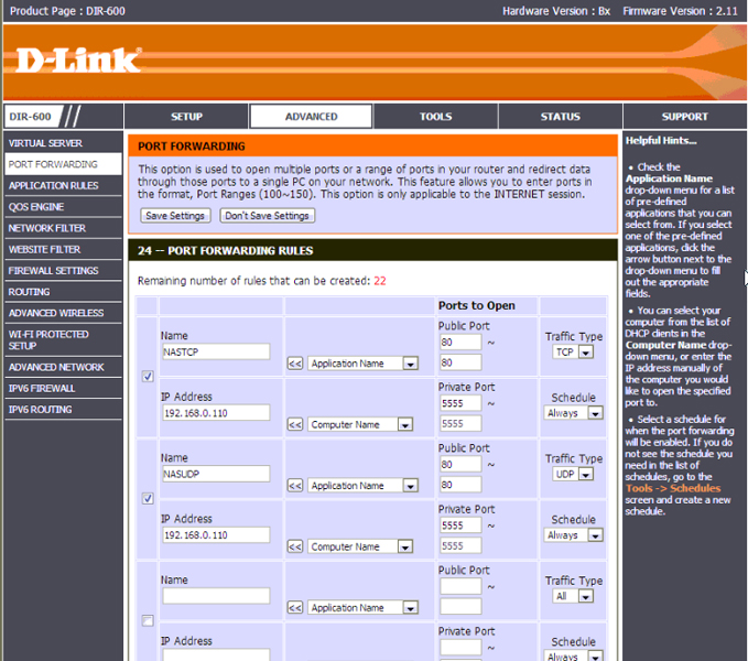 nella configurazione del wi-fi apro le porte del qnap 192.168.0.110