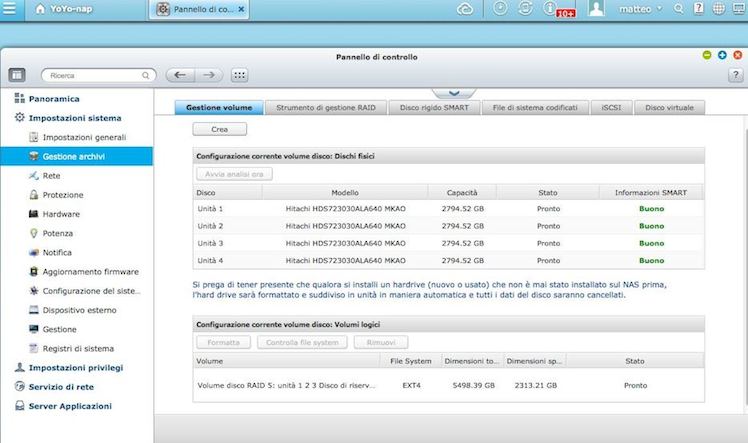 questo lo screenshot (allegato) della console di amministrazione: in "gestione archivi" compaiono solo i soliti "gestione volume", "raid", "smart" ecc. ...