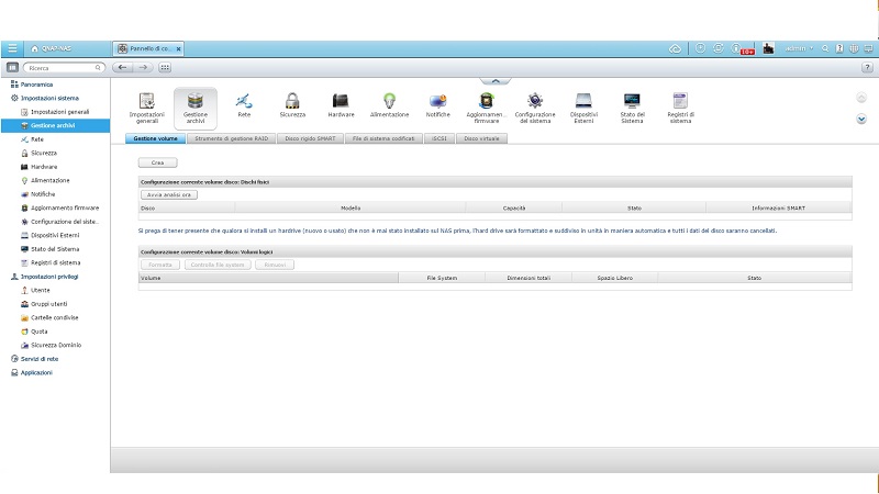 Ogni volta che riavvio il NAS e vi accedo dal PC o dal CELLULARE lo trovo perfettamente funzionante, ma dopo qualche minuto (circa 10-15 minuti) il NAS non riconosce più i due HD e non me li fa comparire nella schermata di "GESTIONE ARCHIVI".