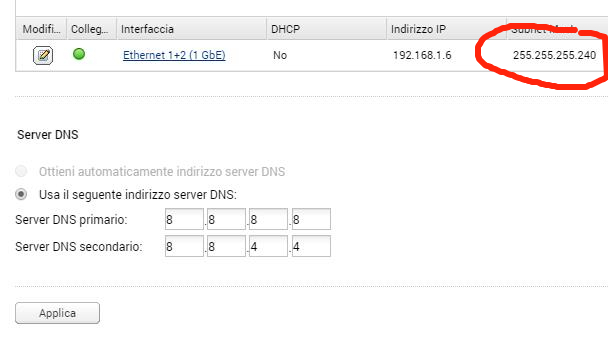 Premetto che la mia connessione è business, quindi ho l'IP fisso, ho parlato con Vodafone e mi è stato detto che i DNS vanno bene quelli applicati e che la subnet mask è ok quella che finisce con 240. Ho configurato la porta 1194 aperta in TCP/UDP (ho letto che serve che sia aperta)............Io non so veramente dove andare ad impostare altre configurazioni di connessioni, ma sta di fatto che ad esempio "Cloud drive sync" non ne vuol sapere di connettersi ed in più nell'App Center (tutte le applicazioni) non visualizzo nulla. In pratica il Nas non esce su internet
