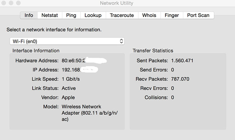 Questa è la connessione che ottengo con un MacBook Pro Mid 2014 e AirPort Time Capsule