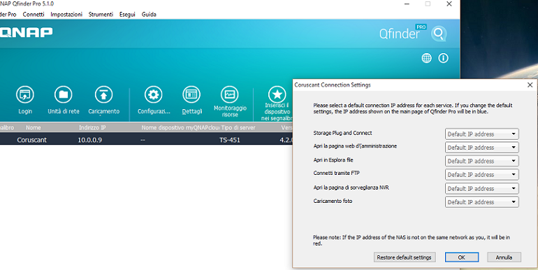 Da qfinder funziona tutto, se vado a unità di rete mi fa accedere alle cartelle, a mostra dettagli posso vedere l'indirizzo ip che è sempre 10.0.0.9 ma non mi dice nulla della porta, in alto se vado a connetti posso ad esempio accedere mediante FTP.....funziona tutto in pratica!