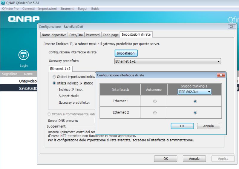 Per questo vorrei capire come conviene configurare unione delle schede di rete sulle nas e sullo switch
