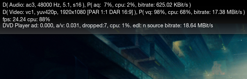 Prova ad utilizzare PLEX come MEDIACENTER è molto valido e non ha mai problemi di video a scatti anche con macchine non particolarmente performanti, premendo il tasto "i" quando si riproduce un qualsiasi filmato ti visualizza tutte le info compresi gli utilizzi della cpu.