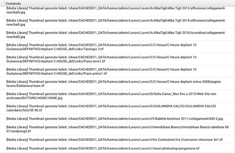 Dopo aver terminato il backup (durato diverse ore dato che erano quasi 2Tb da copiare) ho notato che nel registro di sistema, c'erano degli errori, denominati "thumbnail generate failed"..... per farvi capire meglio vi giro uno screenshot di una parte degli errori