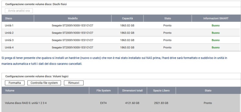 Ho un raid 5 su un TS412, dove ho sostituito 3 dischi da 1.5 TB, con 4 da 2TB.
