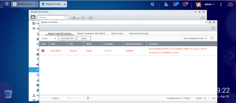 Io ho avuto problema con la download station dopo l'ultimo aggiornamento firmware: ho aperto segnalazione in QNap e mi hanno consigliato questo fix ma...mi torna messaggio di errore dicendo che non ho la versione del firmware giusta!