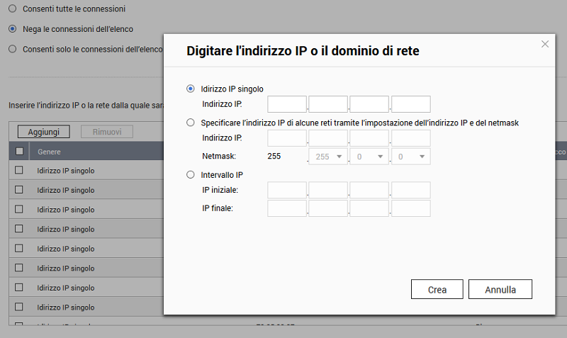 per bloccare gli ip nel nas devi andare dentro al pannello di controllo, sicurezza, livello di sicurezza.