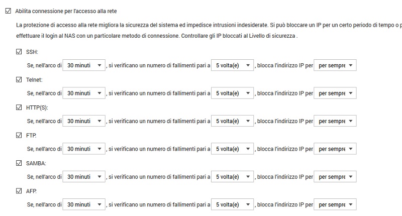 per bloccare gli ip nel nas devi andare dentro al pannello di controllo, sicurezza, livello di sicurezza.