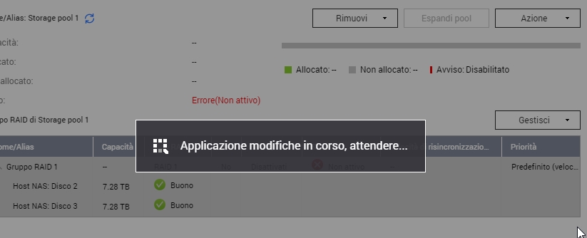 Ho rimesso i dischi originali e ora non avvia più la pool...