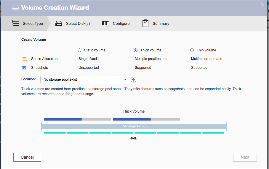 Eh... hai ragione anche tu.... il mio problema è che hai una versione talmente vecchia di QTS che, a memoria, non ricordo dove sia esattamente: dovrebbe essere (riferendomi alla tua prima immagine) sotto la voce VOLUMI che vedi a sinistra. In sostanza ipotizzo che ci sia un volume statico sul primo disco ed un pool creato sul secondo disco.
