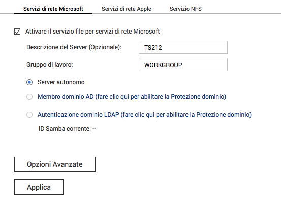 Ti allego due screenshot della pagina di configurazione dei servizi di rete dove potrai vedere che non le opzioni per Samba sono disabilitate : Sad :