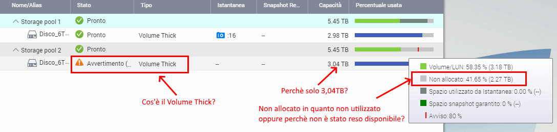 Allego un screenshot nel qualche si vedono i 2 HD da 6 Tb, ed il fatto che di entrambi vede solo circa 3 TB, o almeno io interpreto questo.