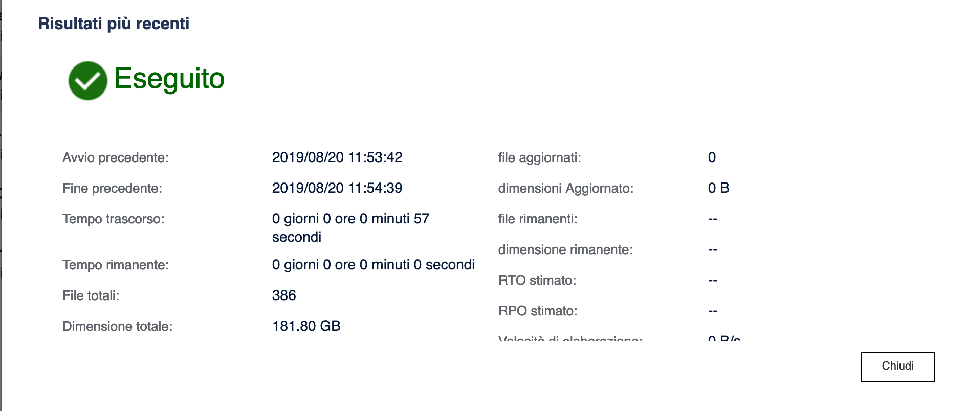 Dal log vedo che ha modificato circa 6GB rispetto ai 180Gb circa già presenti nel NAS di destinazione.