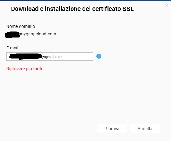 - avevo il certificato SSL rilasciato da LetsEncrypt e quando provo a richiederlo nuovamente mi da l'errore "riprovare più tardi"; pensando fosse un problema legato al fatto che già era presente nella vecchia configurazione, ho provato a creare un nuovo nome di dominio, ma ho ottenuto lo stesso risultato...