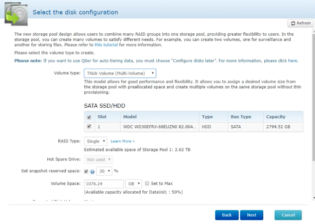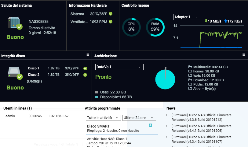 ho configuarato il nas con due hard disk da 2 TB ciascuno (e spero di aver fatto tutto per bene) ho creato una cartella film hd con all'interno circa 350 film e li sto copiando nel nas ,solo che mi dice disponibile 165 TB come e' possibile? l'altro hard disk non viene riconosciuto?