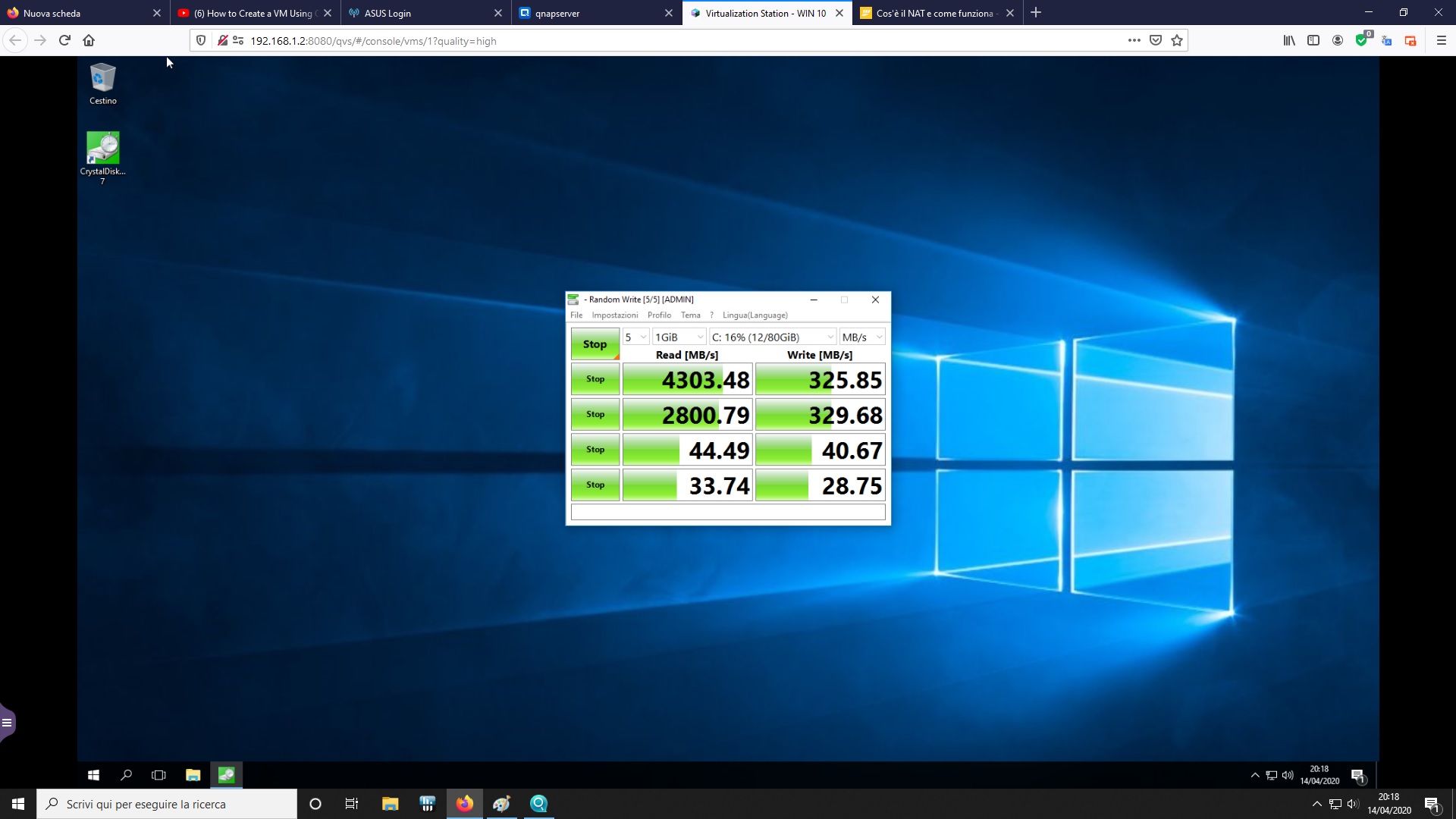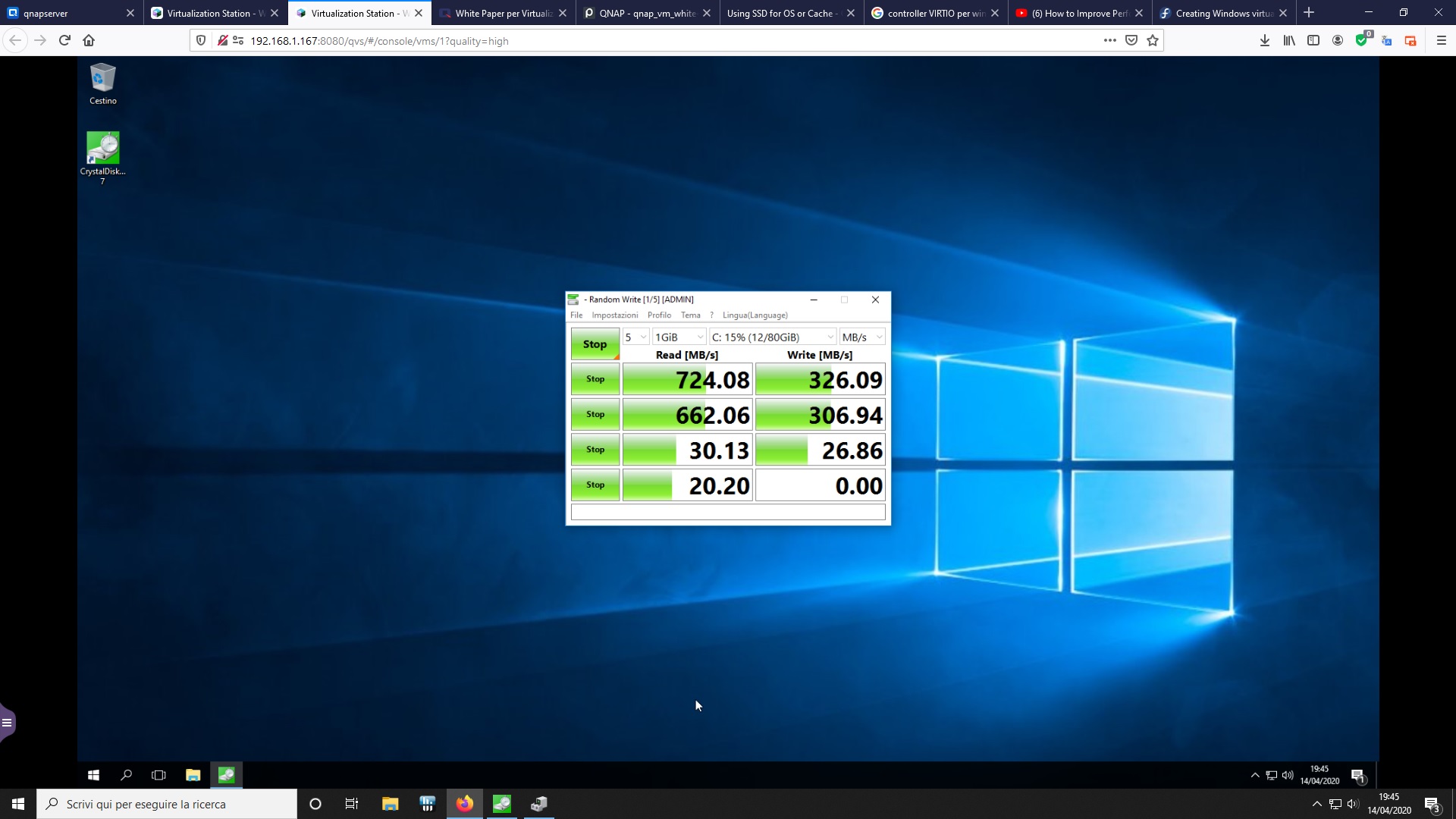 SALVE ragazzi...stio cercando di afre andare piu' veloci le VM a parte installare i cdriver sia per gli hdd che per la rete VIRTIO...ma il problema secondo il muio punto di vista non risede molto nei driver ma bensi dove andate a installare la VM....io ho un ts 670 pro con i7 e 16gb di ram ma purtoppo ho configurato i 6 slot in raid 5....sto inizializzando tutto il nas previo backup per ridurre il sistema a 5 dischi e usare lo slot n6 per metterci un ssd ed e' proprio li' che andro' a installarci le VM sempre con driver VIRTIO sia per rete che per hdd....