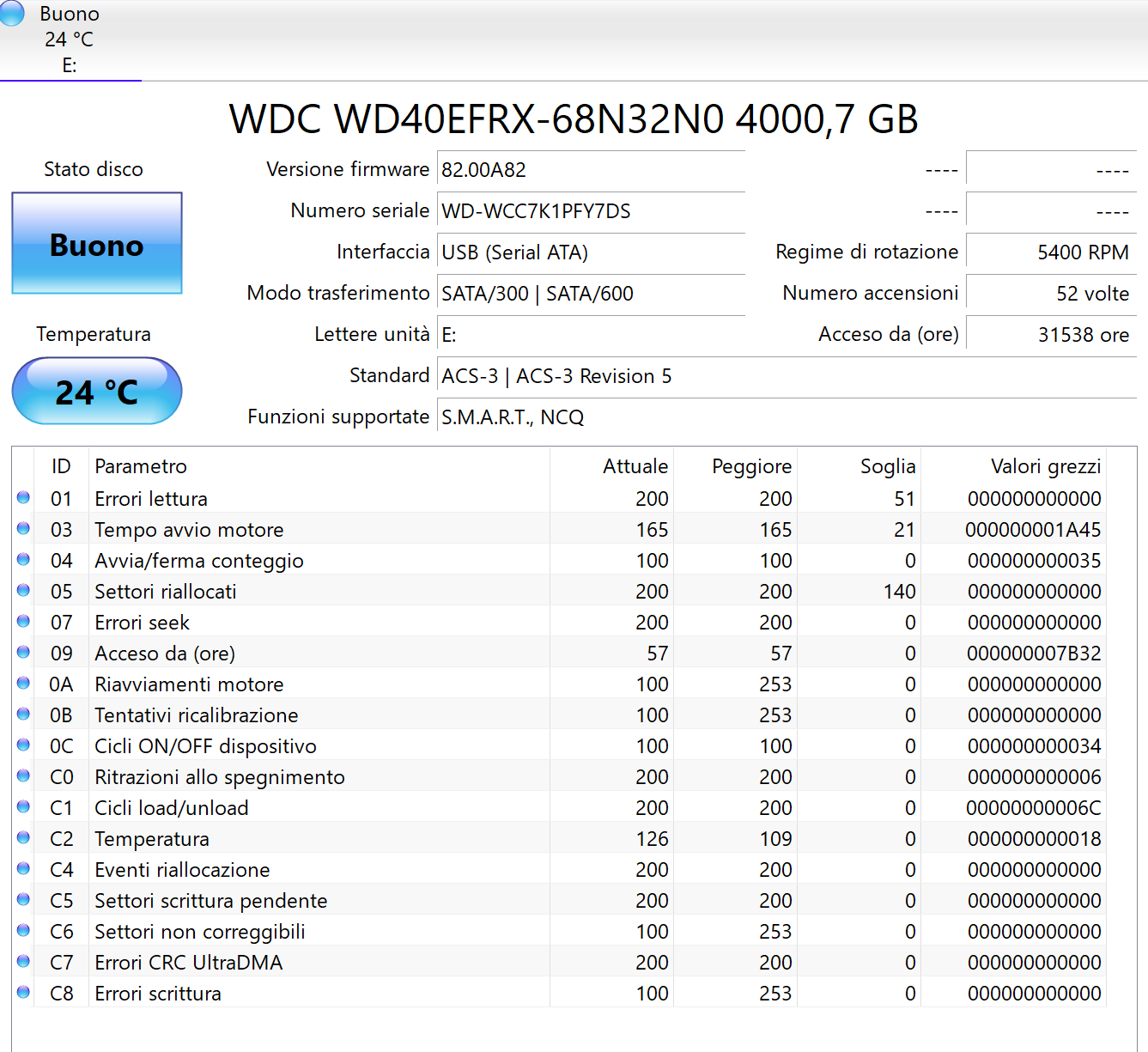 31568 ore accese sono un bel pò di più dei dichiarati "due anni e mezzo di uso discontinuo". Fanno 3 anni e 7 mesi di uso continuo se non erro
