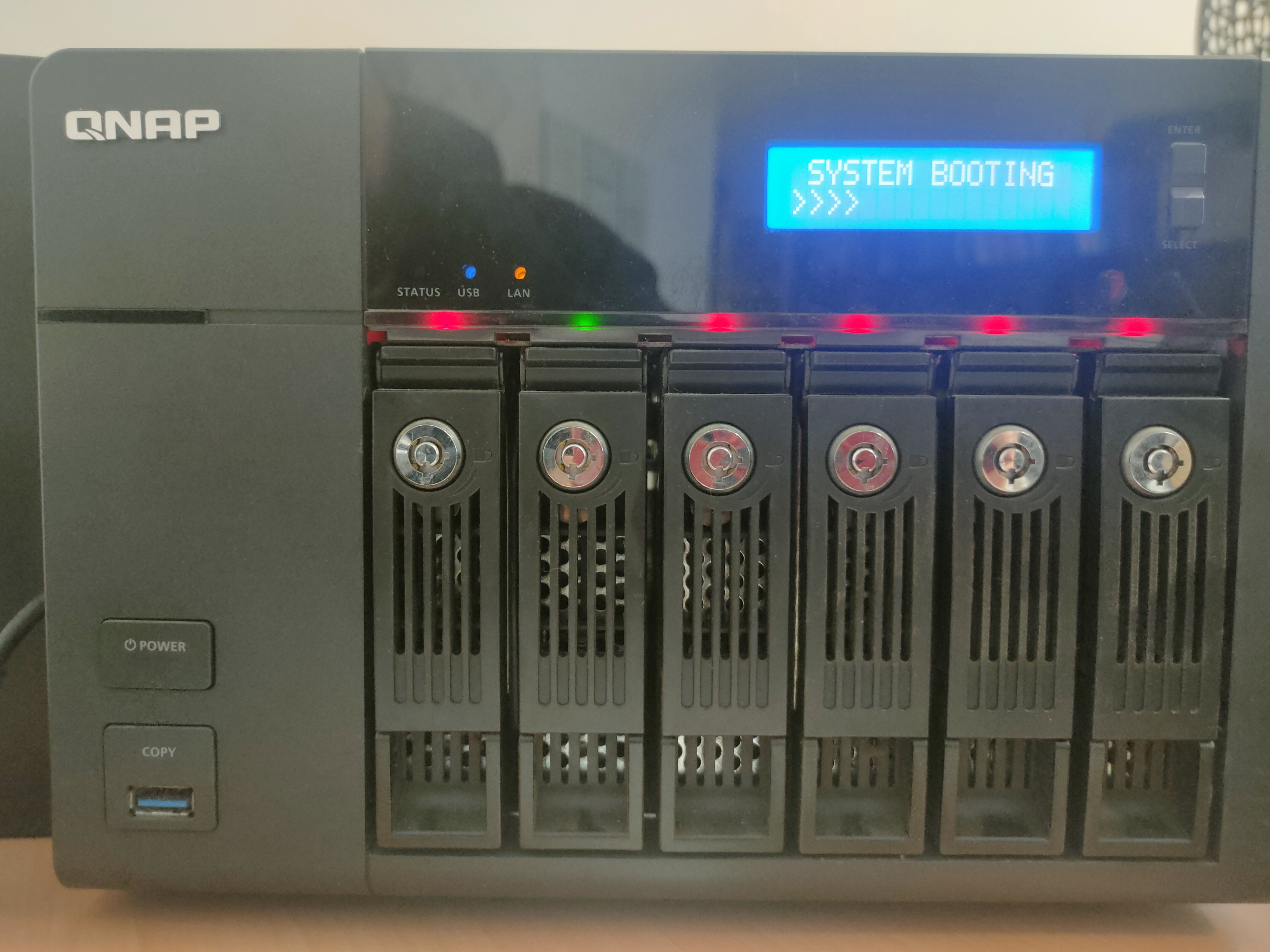 Avevo notato tutte le luci degli hd rosse ed ho dovuto spegnerlo con il tasto power ed alla successiva pressione di power è ripartito tutto normalmente.