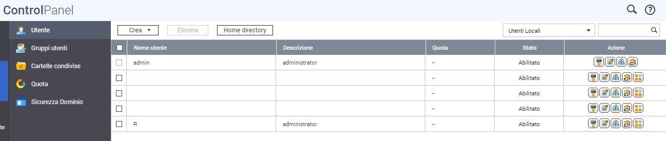 Inoltre, nella pagina del pannello di controllo, non capisco perché ADMIN originario non presenta l'icona della "modifica privilegi applicazioni" mentre il nuovo utente creato con nome di fantasia sì!