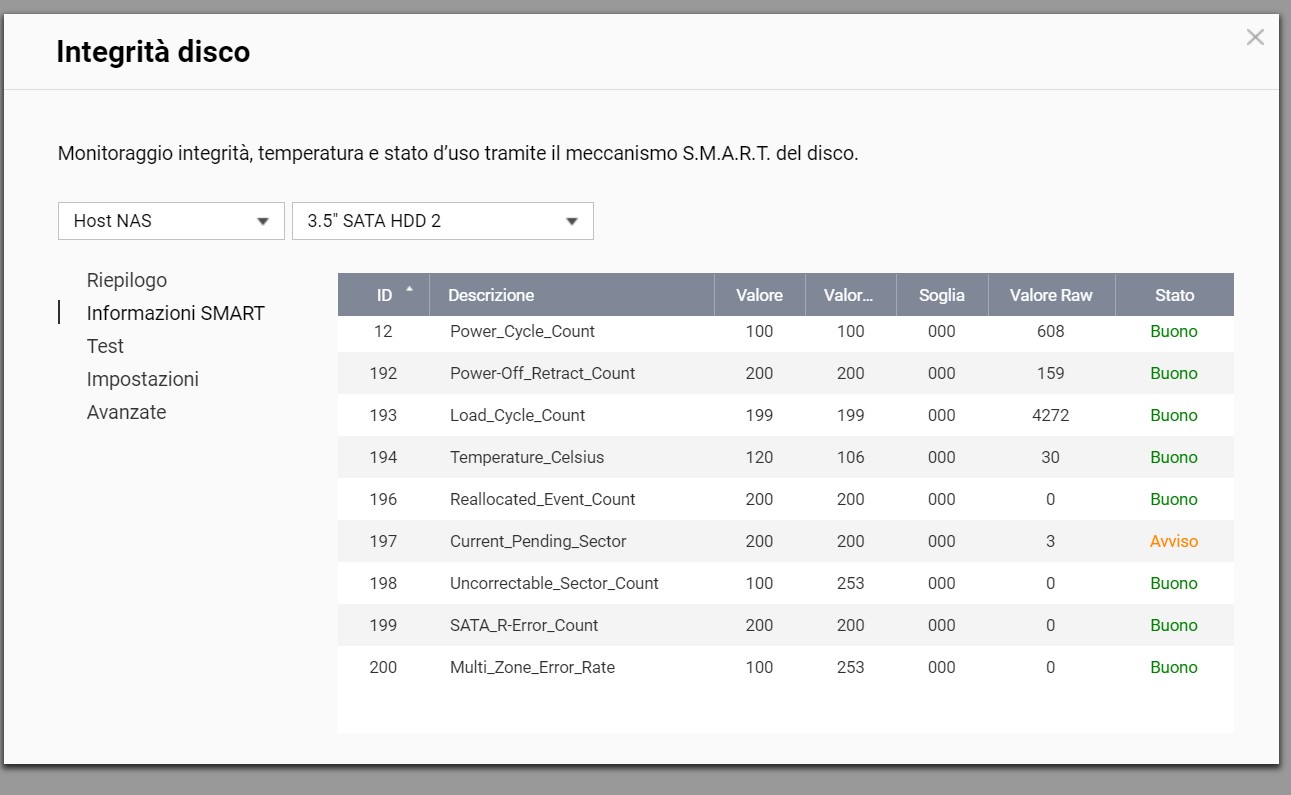 HHD1 presente nel nas era bianco ancora prima dell'analisi e lo è rimasto. HHD2 da verde è diventato arancio.
