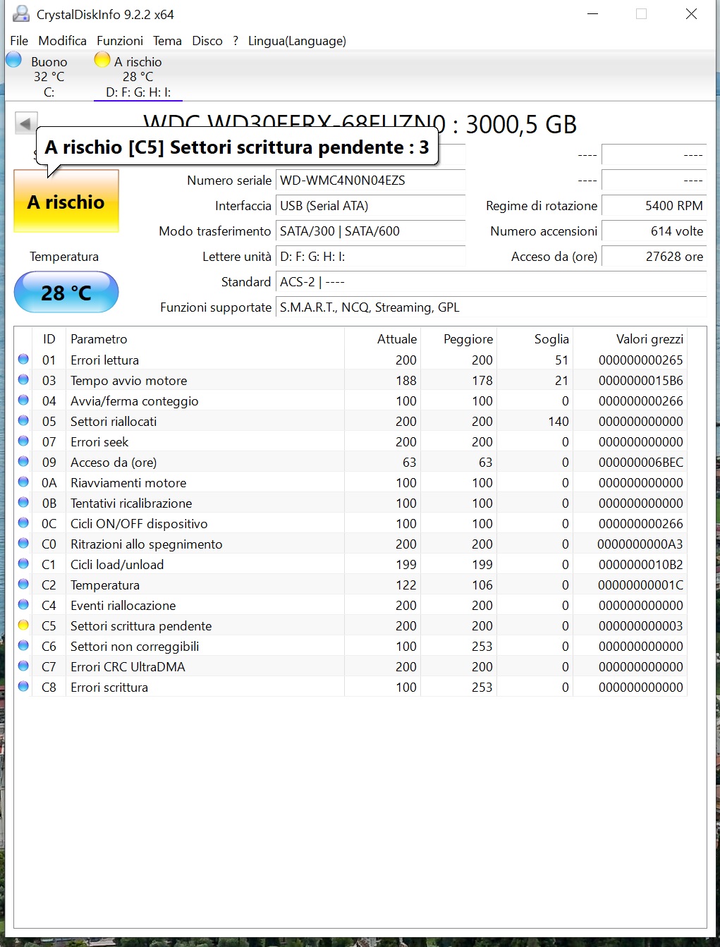 ho provveduto a verificare con CrystalDisk e questa è la situazione: