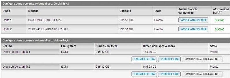 mmh mi servirebbe vedere la pagina web di amministrazione del NAS per capire bene, in particolare la sezione RAID e Condivisioni. I menu sono quelli qui sotto per intenderci: