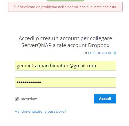Ho risolto il problema dell'utente abilitato alla creazione di connessioni, ma con dropbox ci litigo..... onedrive e googledrive tutto ok, ma quella schermata li è costante, non c'è verso di entrare.Marchi Matteo ha scritto:Ho installato stamani Connect to cloud drive (per magia, visto che non mi è riuscito mai installarla - si vede che anche il nas aveva bisogno del sabato e domenica di riposo) ....... ma ho un paio di domande: