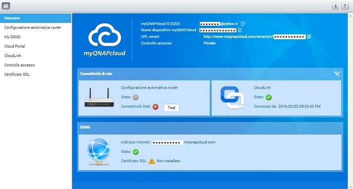 - Qfile: tramite indirizzo di rete myqnapcloud: NON Riesco ad accedere