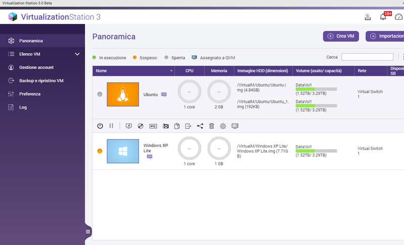 Siccome non avevano senso quei due hd da un tb sono stati rimossi perché sono in arrivo altri due WD red da 4TB, il problema è che sull'hd n.4 c'era un'unica cartella condivisa, ovvero quella dedicata alla VM, adesso ne ho creata un'altra sull'hd in slot 2 ma all'avvio della Vitualization station non mi permette di creare nuove Virtual Machine, resta in perenne ricerca della vecchia cartella che non c'è più, ovvero nella parte dove di solito si vede l'elenco delle VM è visibile la scritta "caricamento".