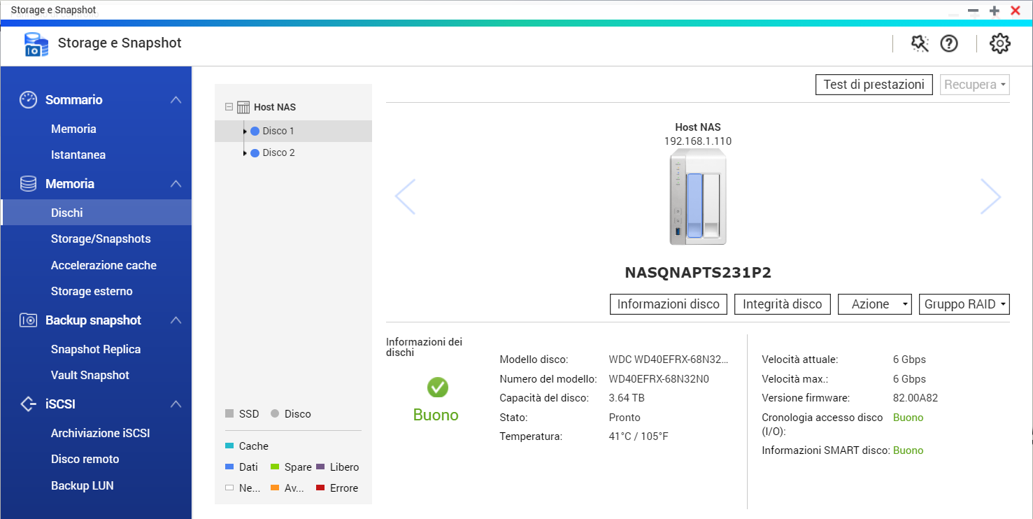 Pochi giorni fa ho acquistato un TS231P2 aggiornandolo all'ultimo firmware disponibile. HO inserito nel nas seguendo la procedura guidata due dischi WD HDD RED 4T e li ho impostati in RAID 1