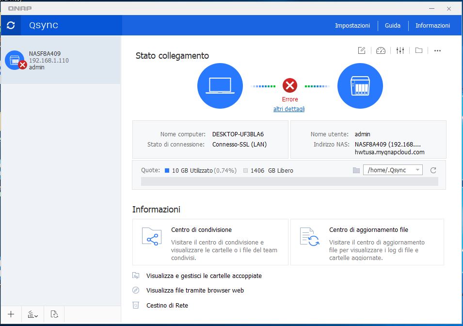 Un saluto a tutto il forum, mi sono iscritto perchè è da un un paio di giorni, da quando si è aggiornato windows 10 alla versione 1803 che Qsync non riesce a connettersi.
