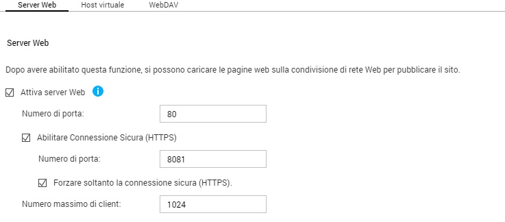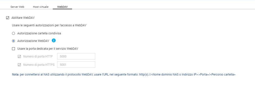 Sto cercando di abilitare la connessione WEBDAV dal mio smartphone al mio nas