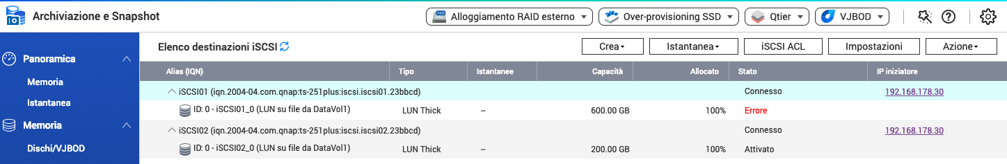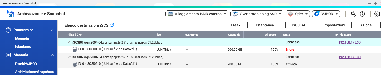 da circa una settimana mi si presenta un'errore su una LUN che esporto via iSCSI con la mia QNAP TS-251+ verso un host ESXi