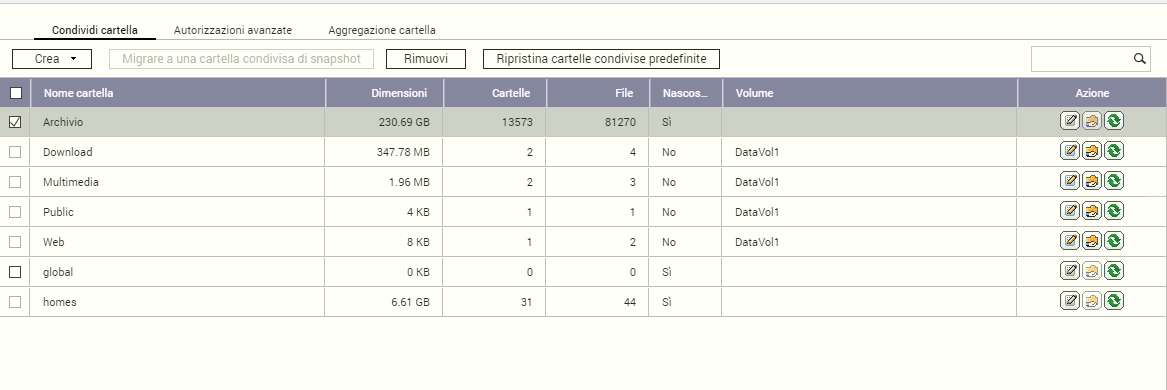 Buongiorno a tutti, come da screenshot allegato ho un problema con 2 cartelle condivise, una di sistema ovvero la homes, e una creata exnovo ovvero archivio.