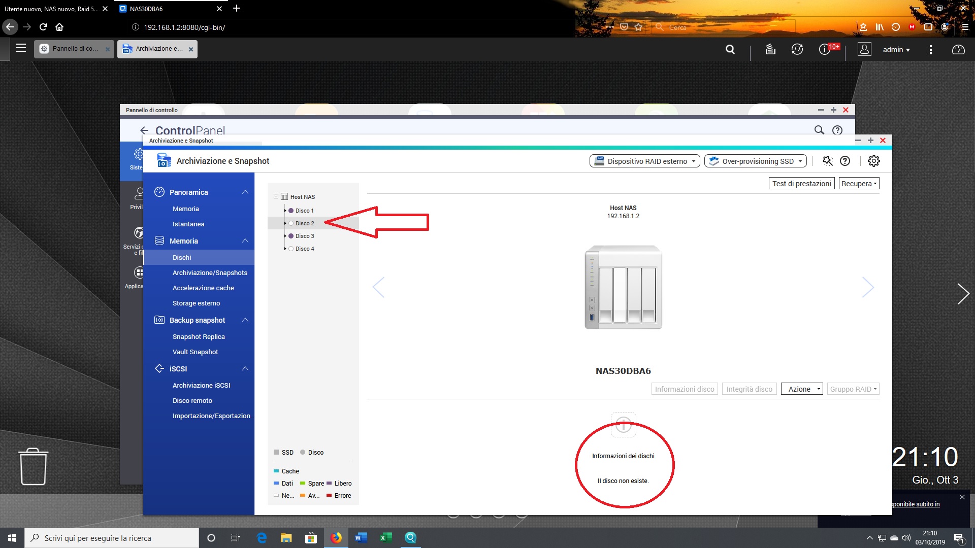 Io volevo configurarlo in Raid 5.FFFAB ha scritto: 03/10/2019, 15:43 Non hai scritto se hai già configurato i dischi in qualche modo: se non hai configurato ancora nulla, io mi concentrerei sul motivo per il quale il disco 2 è "non rilevato".