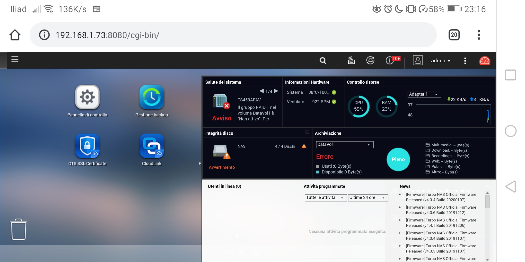 Adesso non mi fa più fare niente e non vedo più il contenuto nel file manager. Non ho spento il Nas per paura che non si riaccenda più, nel frattempo vedo il contenuto degli altri dischi anche se non posso usare app.