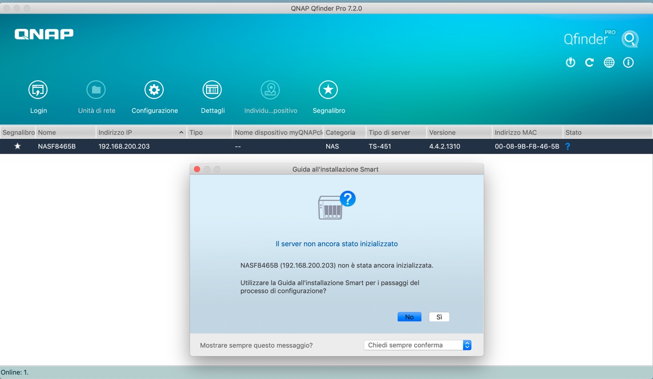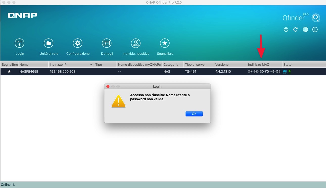 ma mi da errore , una cosa strana è il numero ip che vedo in Qfinder, non so bene come viene assegnato, dato che sul router il DHCP non è il lista