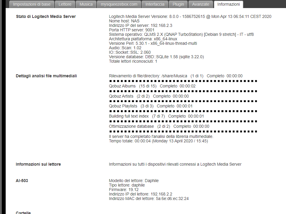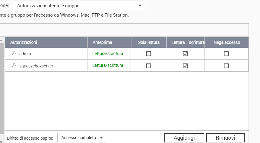 Sembra essere un problema di permessi ma ho dato tutti i permessi all'utente "squeezerboxserver" che lms ha creato sul nas.. Boh..